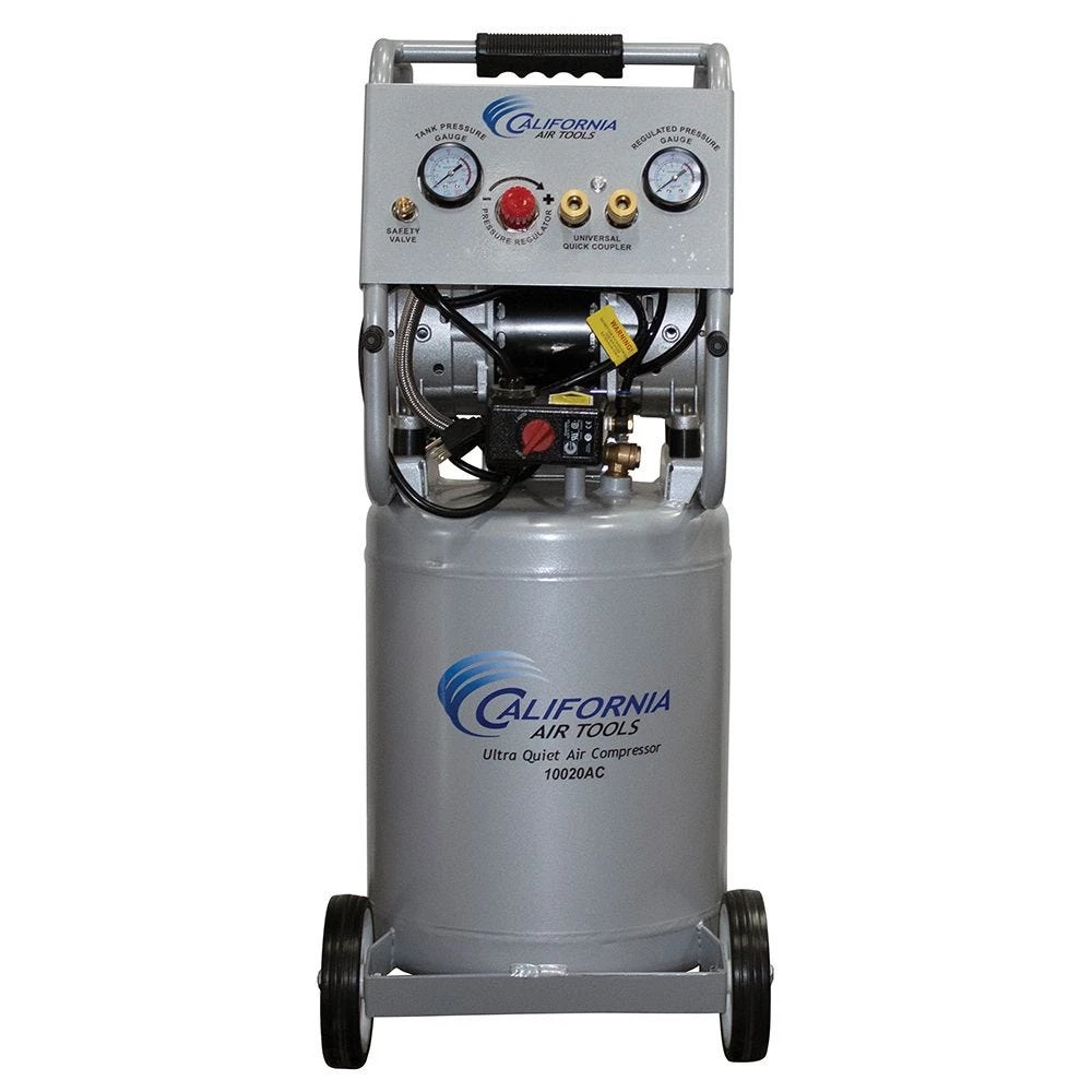 The California Air Tools 10020AC Ultra-Quiet & Oil-Free Air Compressor is one of the quietest 2.0 HP air compressors in the industry, emitting only 70 decibels of sound. The Powerful 2.0 HP (SP-9421) motor operates at only 1680 RPM, creating less noise and less wear. The SP Series of Ultra Quiet Air Compressor motors has been designed to increase duty cycle and allow for longer continuous run times. The Oil-Free Dual Piston Pump System is engineered for high performance and durability. The CAT-10020AC Air Compressor has an Oil-Free Dual Piston pump with a life cycle of 3000 plus hours compared to comparable compressors with life cycles of 500 hours or less. The Oil-Free pump allows for use in a variety of temperatures (cold starts) and uneven terrains (no oil in the pump). The Easy Start Valve feature allows for easier start-up using less starting amps, especially in cold temperatures. The 10-gallon tank is made from aluminum so it’s lightweight and won’t rust. The included wheels make it very easy to move around the jobsite, shop or garage.